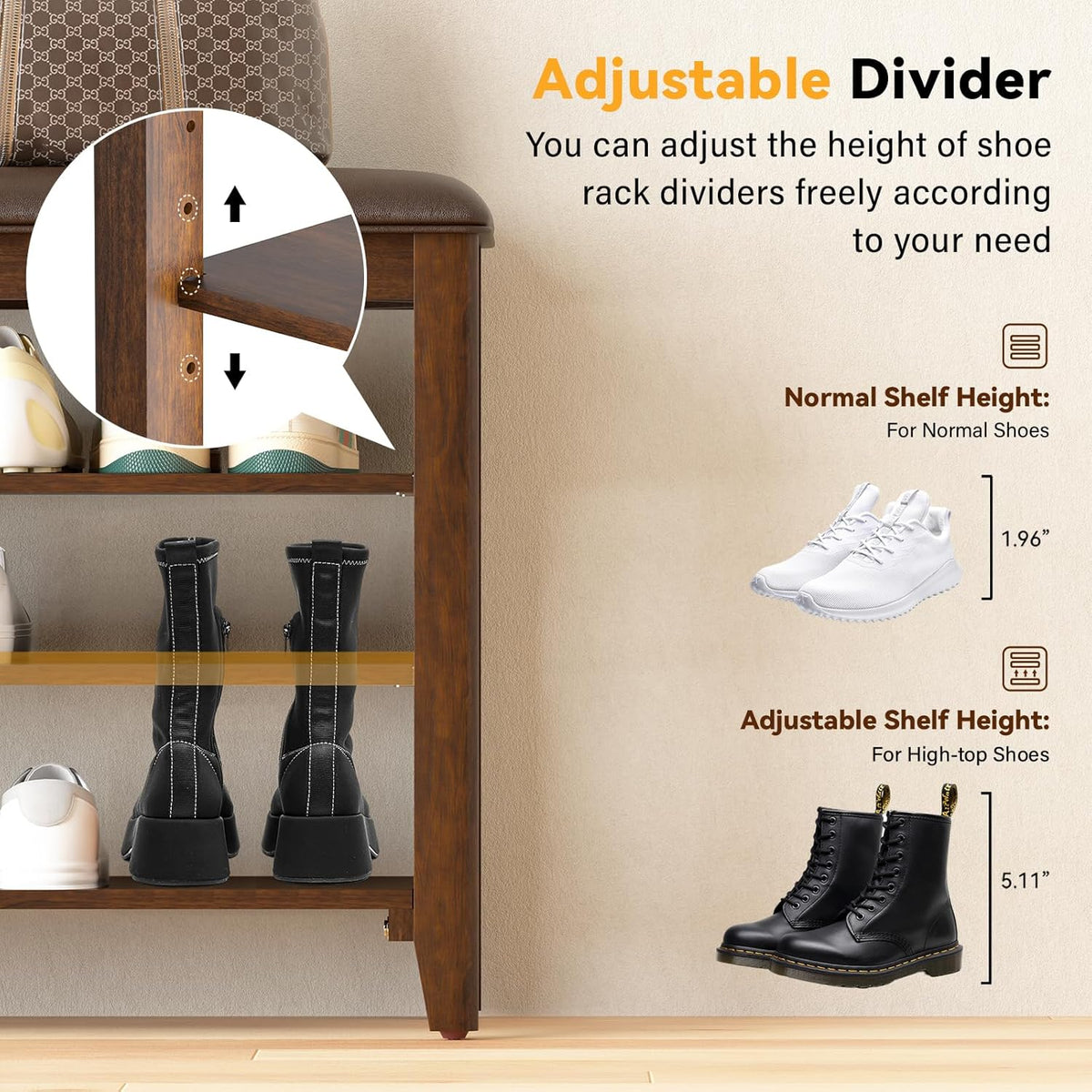 TAITIY 31.5-Inch Walnut Shoe Bench with Leather Cushion