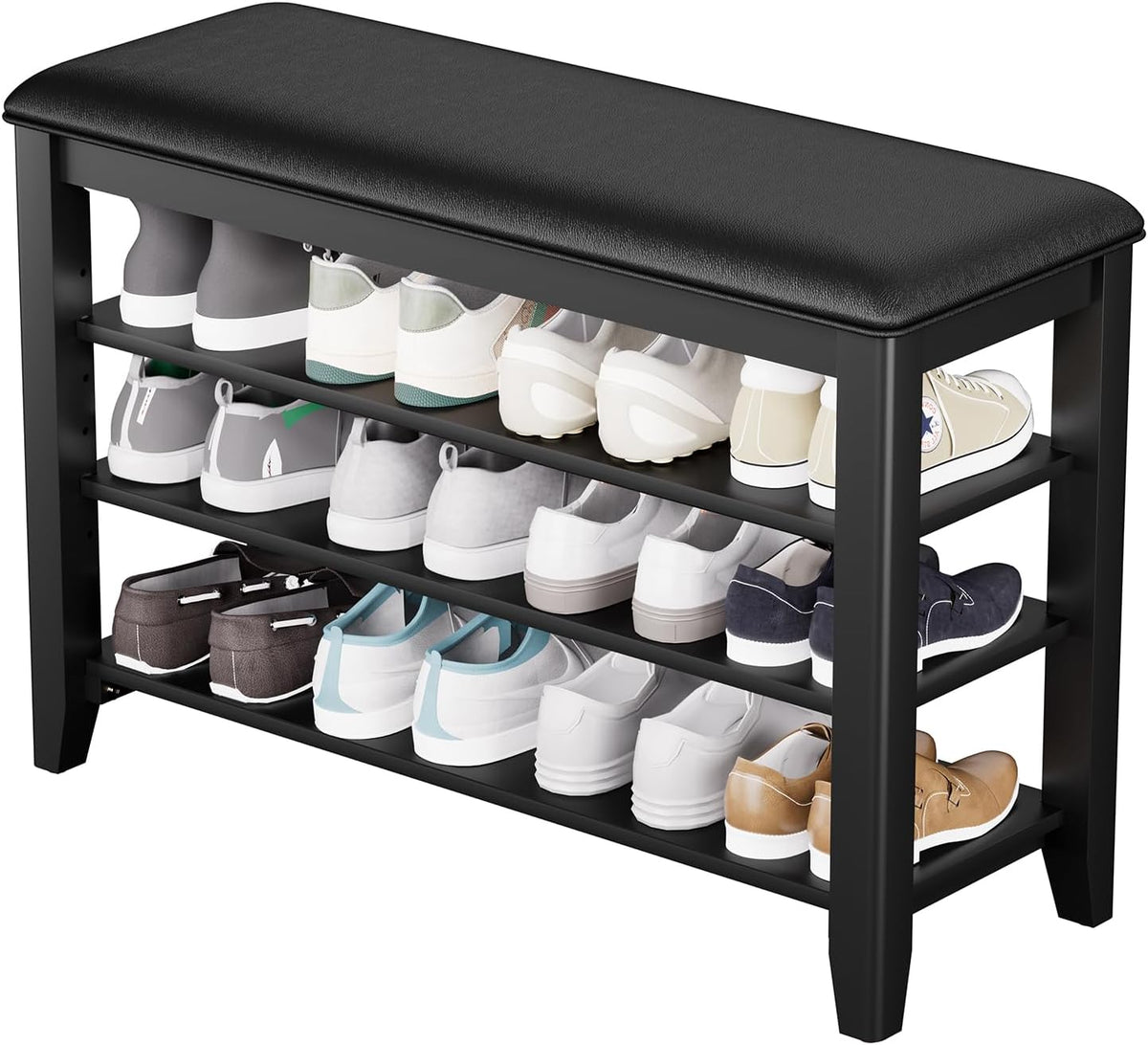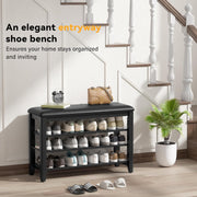 TAITIY Solid Wood Clothes Rack, 2 Shelves & 4 Hooks, Size S 18.11" Wide, Walnut Brown