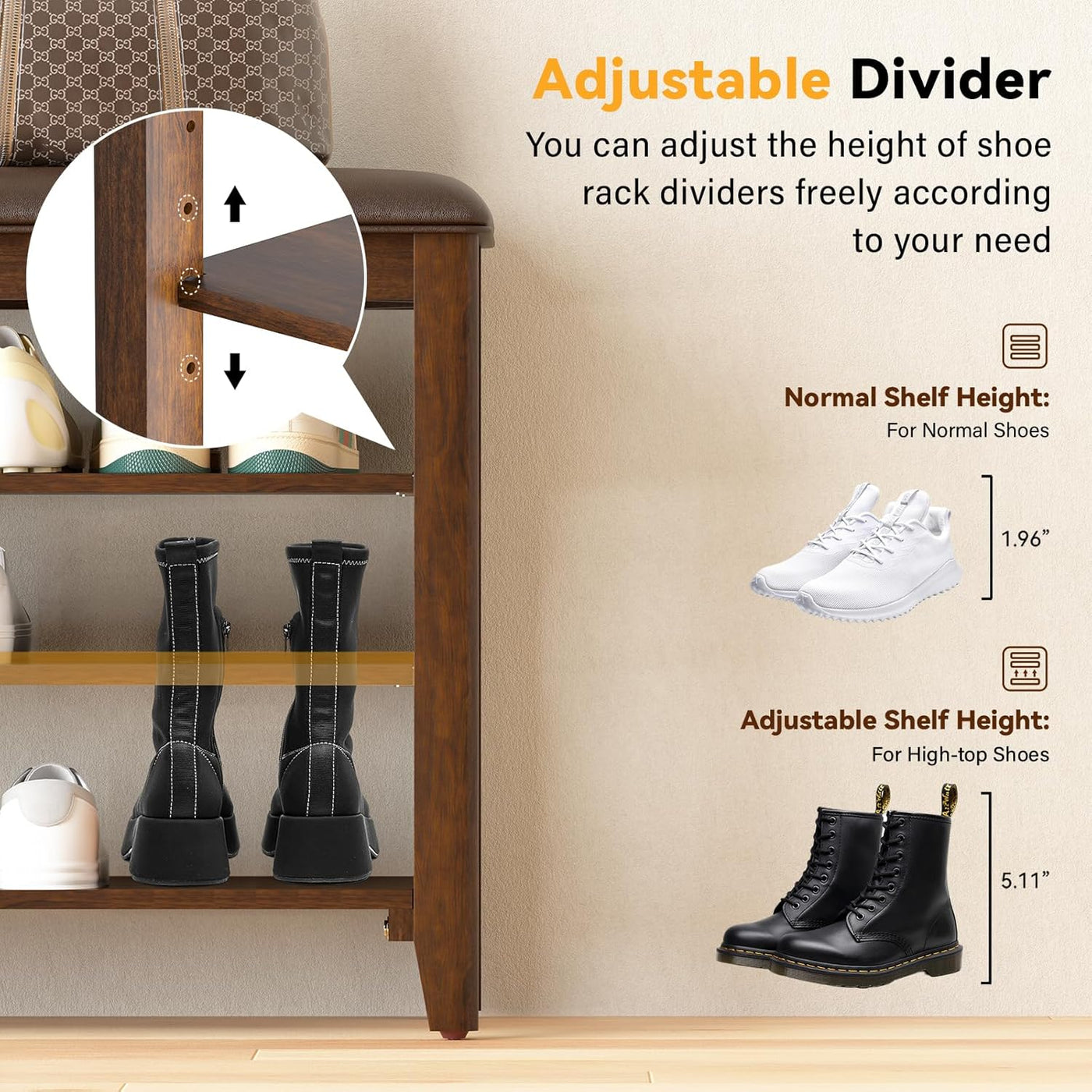 TAITIY Solid Wood Clothes Rack, 2 Shelves & 4 Hooks, Size S 18.11" Wide, Walnut Brown