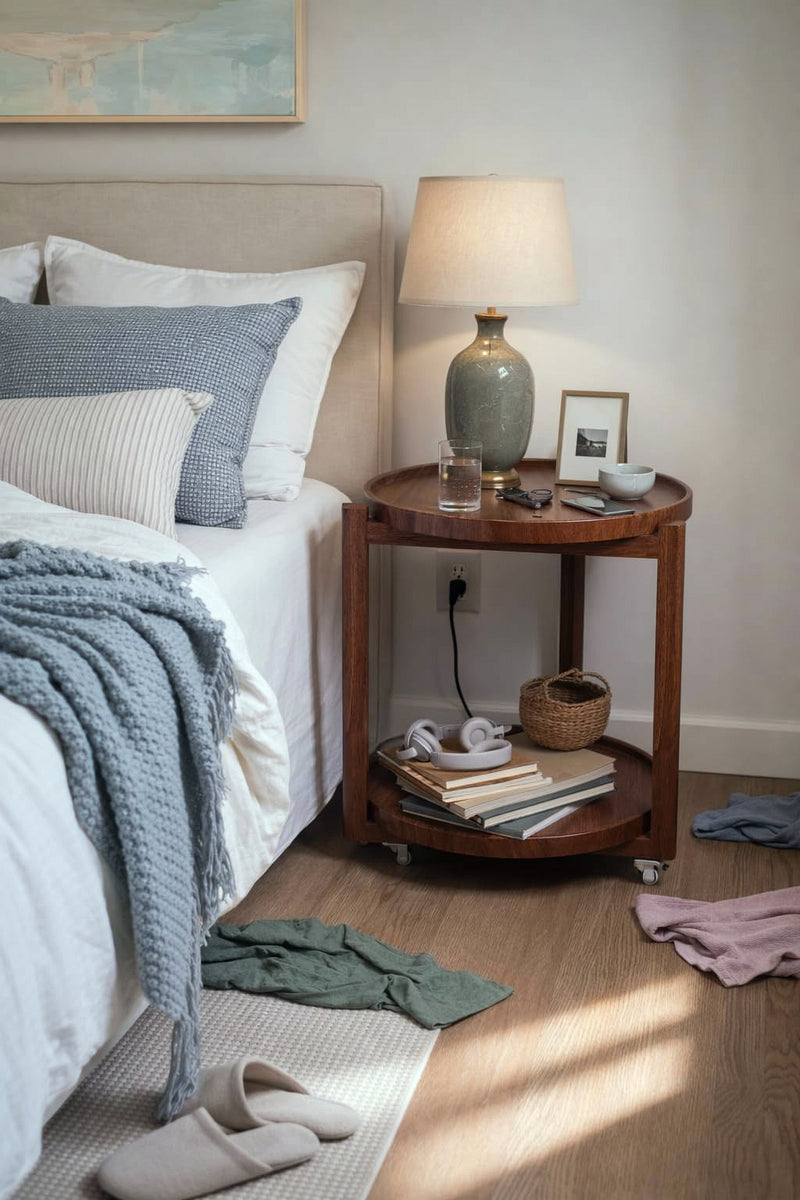 Solid Wood Oak Bistro Table Desk with Storage Drawer and Natural Finish, 60cm Width