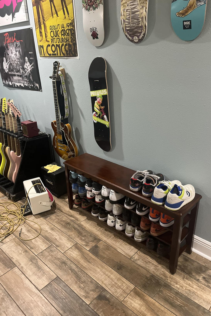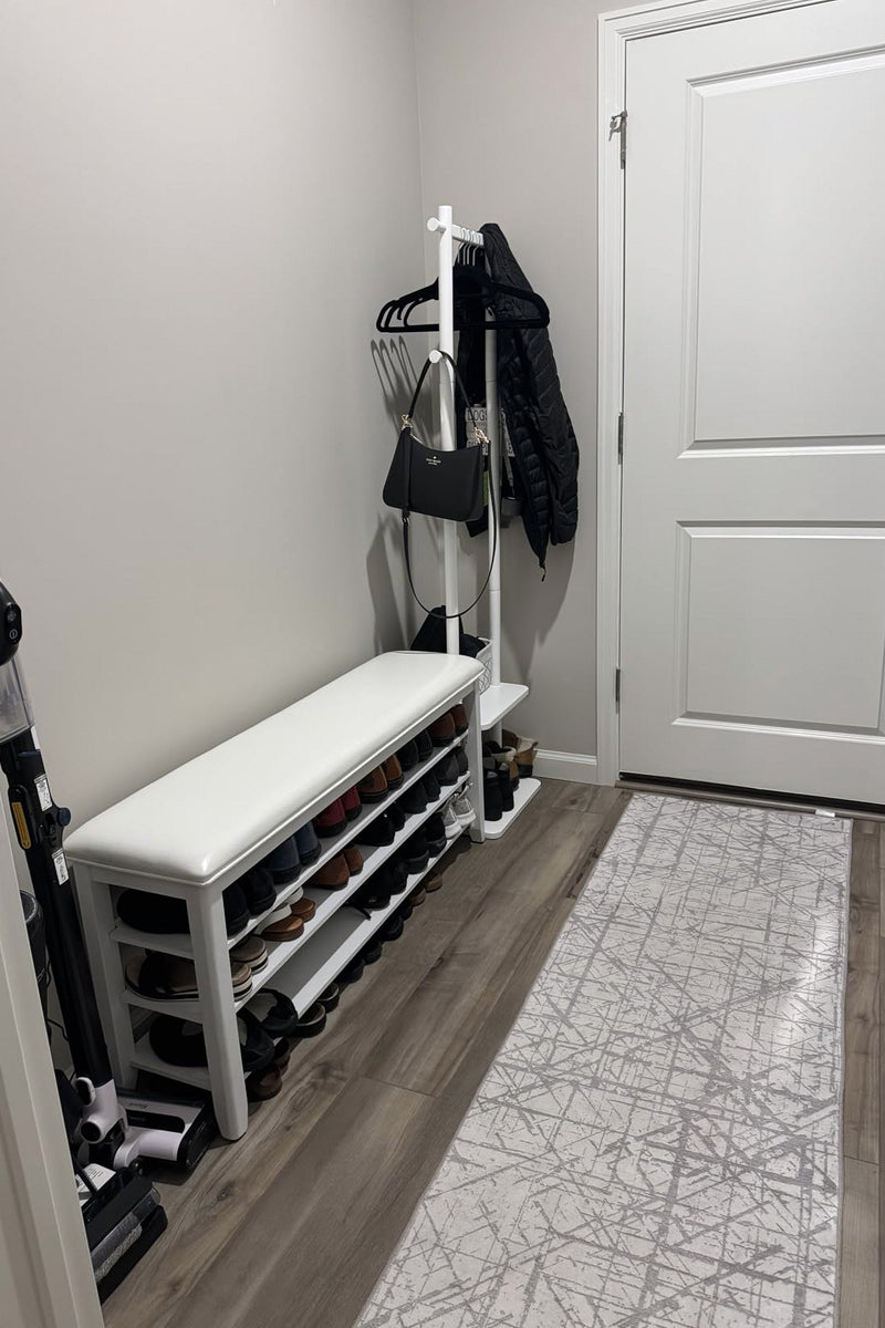 TAITIY 31.5-Inch Black Leather Cushion Shoe Storage Bench